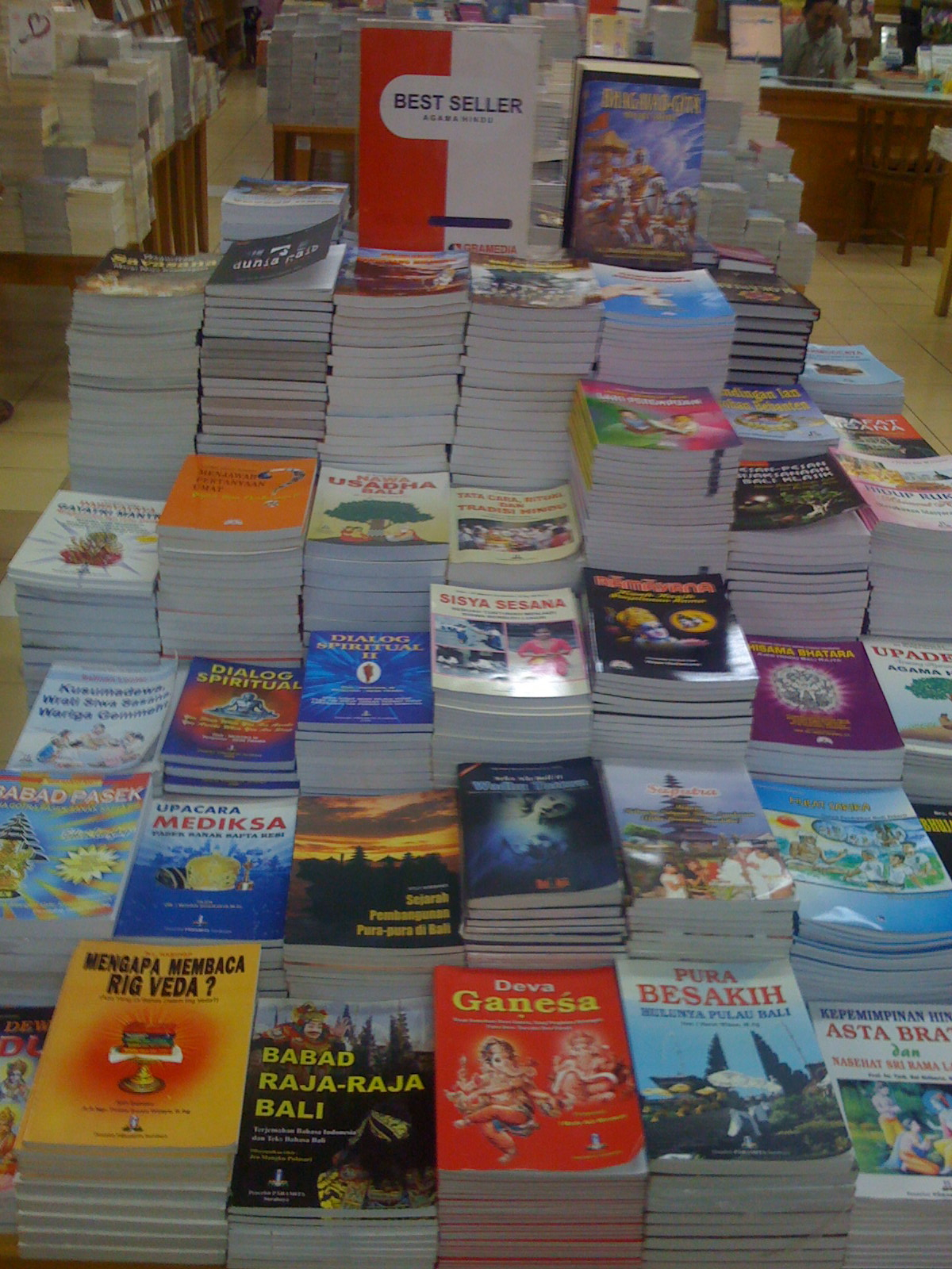Those cheap publications, usually written in modern Malay/Indonesian or Balinese, were primarily aimed at edifying the majority of Balinese in matters of Hindu doctrine, ritual, and morality. This trend has endured to the present day: especially in the last two decades, Balinese bookshops have been flooded with books on Hinduism. These publications include Indonesian translations of Sanskrit ‘canonical’ Hindu scriptures such as the Bhagavad Gita, the Vedas and the Puranas; editions and translations of ancient Old Javanese scriptures; and booklets on ritual matters, meditation, magic, as well as wider socio-religious issues relevant to the Balinese community.