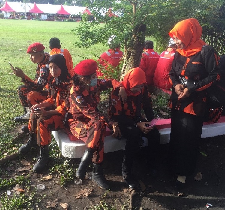 Members of Pemuda Pancasila before marching on the occasion of Balikpapan’s anniversary / Lotte Troost